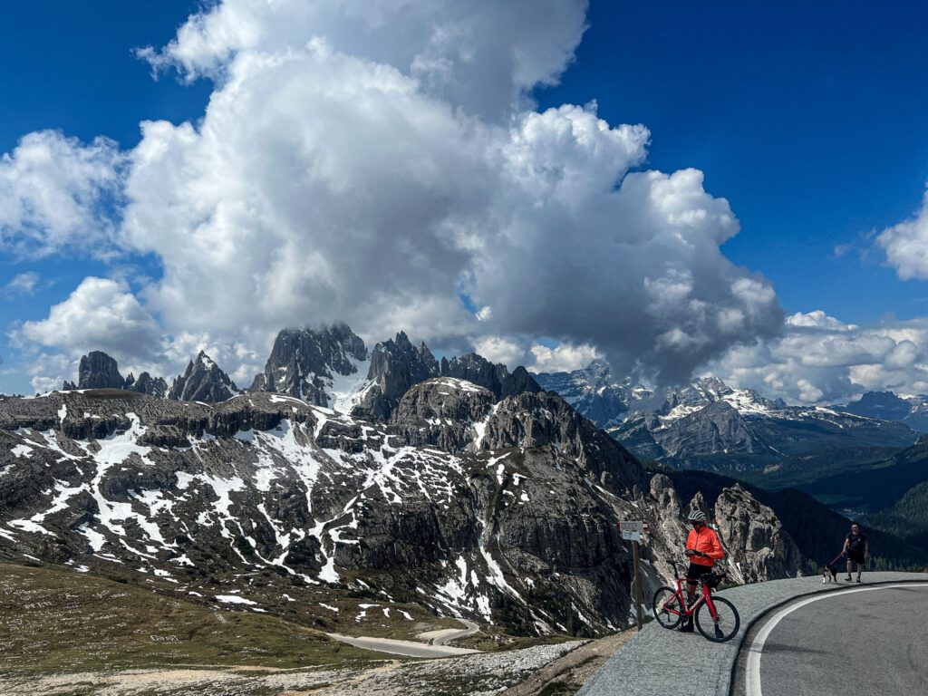 Balkon Ikonische Gipfel. Ikonische Auffahrt. Die Sackgasse zum Refugio Auronzo, das direkt unter den Drei Zinnen steht, ist eine der klassischen Anstiege des Giro.