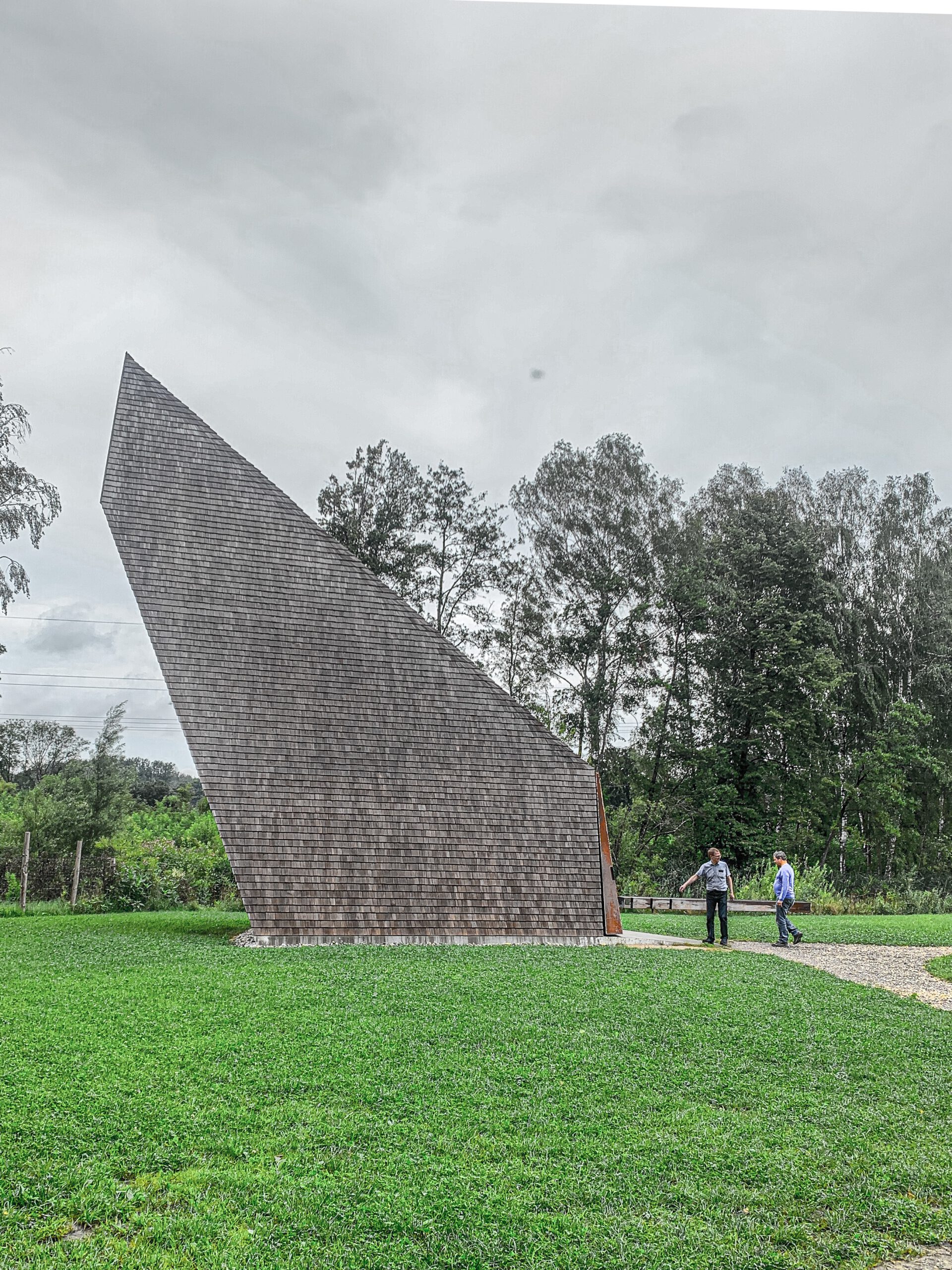 Im Landkreis Dillingen an der Donau hat eine private Stiftung ein bemerkenswertes Konzept umgesetzt. Sieben moderne Kapellen wurden in die Landschaft gesetzt. Einem traditionellen Kirchgänger würde es vermutlich bei jeder einzelnen Kapelle das Gesangsbuch zuschlagen. Die sieben Bauwerke brechen mit gängigen Konventionen. Überdies sind sie mit einem Radweg verbunden. Hat was von Fahrrad-Kreuzgang. Finanziert wurde das Projekt, von der Siegfried und Elfriede Denzel Stiftung. Drei der sieben Kapellen, jede von einem anderen Architekten, passten wie gemalt auf meine Route. Nur bei der Auswahl der Baumeister, sollte der Kurator bitte in Zukunft mit mir sprechen. Da fehlt einer. Aber was weiß ich schon?