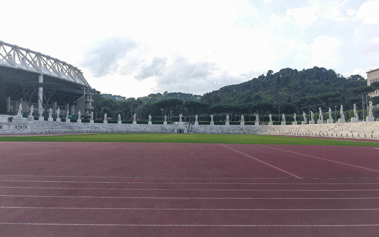 Finale Grande: Das römische Marmorstadion ist umringt von den klassischen Helden des Sports. Alle Disziplinen sind vertreten. Sogar Bogenschießen. Radfahren fehlt. Also stelle ich mich gleich auf den freien Sockel. Falls es mir da oben zu langweilig wird, ziehe ich Plan B: Mit Zug und Bike zurück nach Stuttgart. Freunde, Grazie mille für den großartigen Support auf meinem privaten Giro. Euer Ein-Mann-Gruppetto für das Team Chianti Classico springt ins Regenerationsbecken. Erkenntnis des Tages: Warum in den wiederkehrenden Abnehm-Ratgebern des Frühjahrs der Vorschlag „Giro d’Italia“ noch nie aufgetaucht ist, bleibt ein Geheimnis der deutschen Presselandschaft.