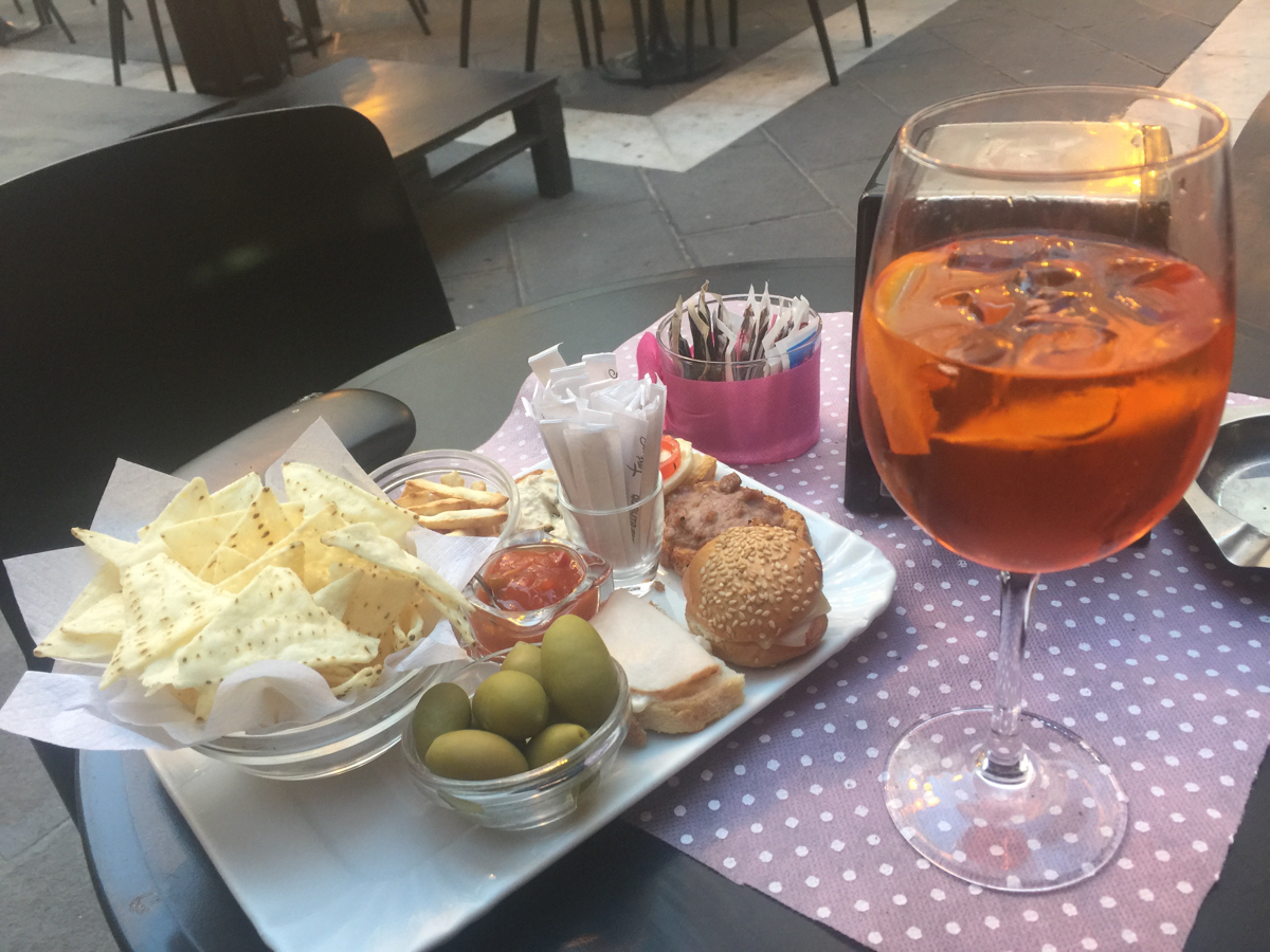 Mensch und Maschine hatten einen Ruhetag dringend nötig. Man könnte es im Giro-Speech auch als Bergzeitfahren verkaufen. Wenn ich mich in Chieti Alto einquartiere, ist es Ehrensache, dass alle drei Bici-Spezialisten unten in Chieti Scalo sind. Höhenunterschied wie Schwäbische Alb. Aber mein Bike wieder wie neu. Achter raus. Neue Bremsbeläge. Neu bereift. Saubere Sache, gerichtet vom Spezialisten Ivan Capone. Name wie Mafia. Mundwerk wie Italia. Preise fast umsonst. Als ich zahle, bemerkt die Thekengesprächsrunde meinen Handschuhabdruck. Arm braun. Hand kalk. Finger braun. Das verrät den Deutschen. Rauf nach Chieti Scalo fahr ich doppelt so schnell wie gestern. Frische Beine, ohne Gepäck. Man soll ja auch am Ruhetag die Haxen lockern. Am Abend sitze ich in der Piazza und staune, welche Vorspeisenplatte man mit einem Lächeln zu einem einzelnen Spritz bekommt. Acht verschiedene Häppchen. Mit Dip. Weil ich es aus La Concha Stuttgart anders gewohnt bin, geh ich noch eine Bar weiter. Dorthin, wo man ordentlich angeraunzt wird, wenn man einen schmucklosen Wein haben möchte. Lecce? Hab ich irgendwann was von Lecce fantasiert? Kann mich nicht mehr erinnern. Erkenntnis des Tages: Bari ist auch Apulien. Das reicht völlig. Sind noch dreieinhalb Etappen, wenn weiterhin alles klar geht. Hicks.