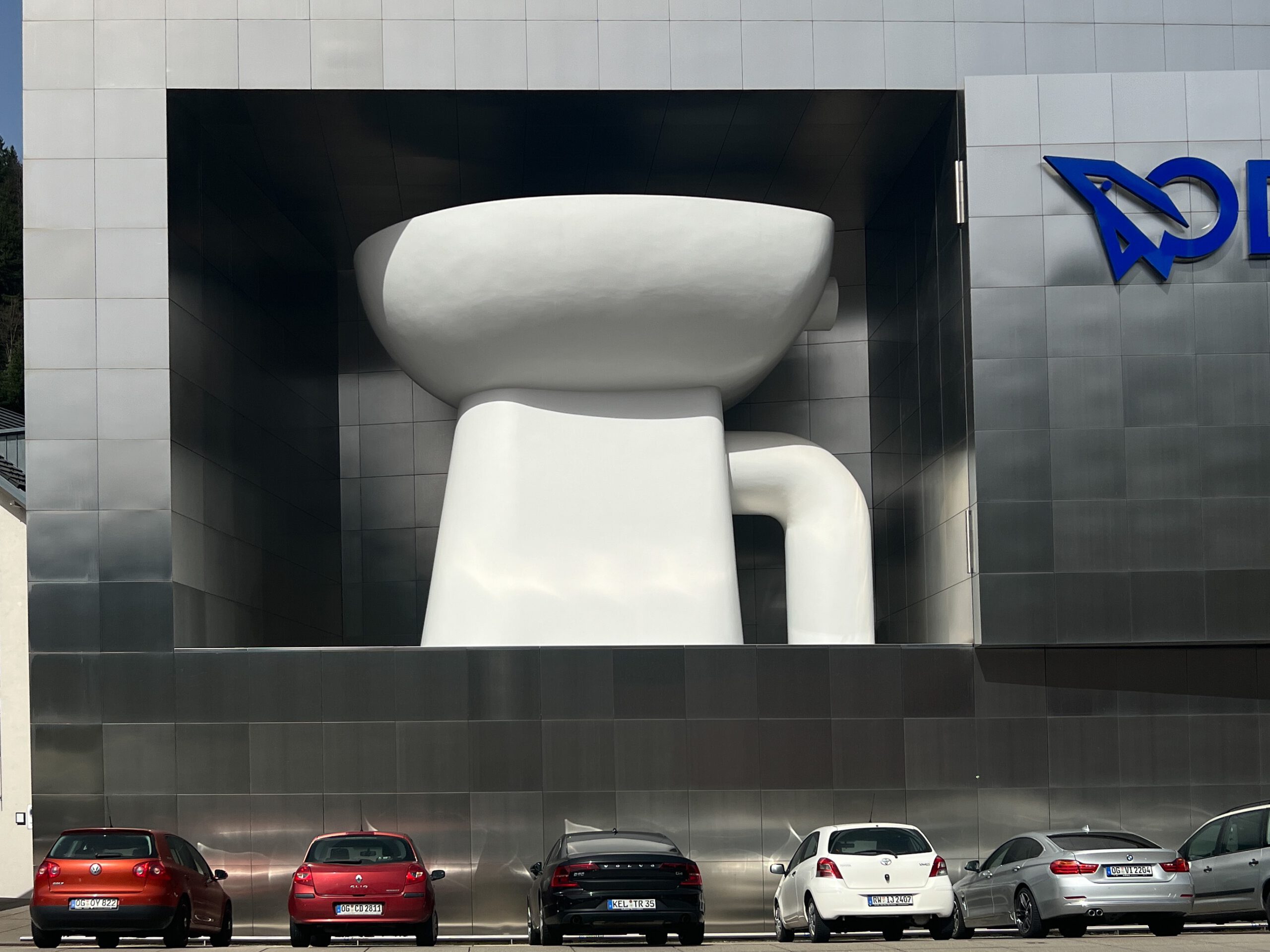 Persönlich ziehe ich Hornberg vor. Da steht das größte Klo der Welt. 7 Meter hoch. Auf der Schüssel kannst du laufen. Das ist die Aussichtsplattform, die du betreten kannst, wenn du aus der Duravit Design Welt kommend wieder die normal undesignte Welt anschauen willst. Und bitte: Nicht jedes Schwarzwälder Gestaltungsidee sollte man das Klo runter spülen. Im Gegenteil: Dieser Superlativ ist angebracht. Man muss sich doch fragen: wie oft im Leben schaut man auf ne Kuckucksuhr, und wie oft sitzt man auf der Designschale. Hornberg sticht Triberg. Tatsachenentscheidung.
