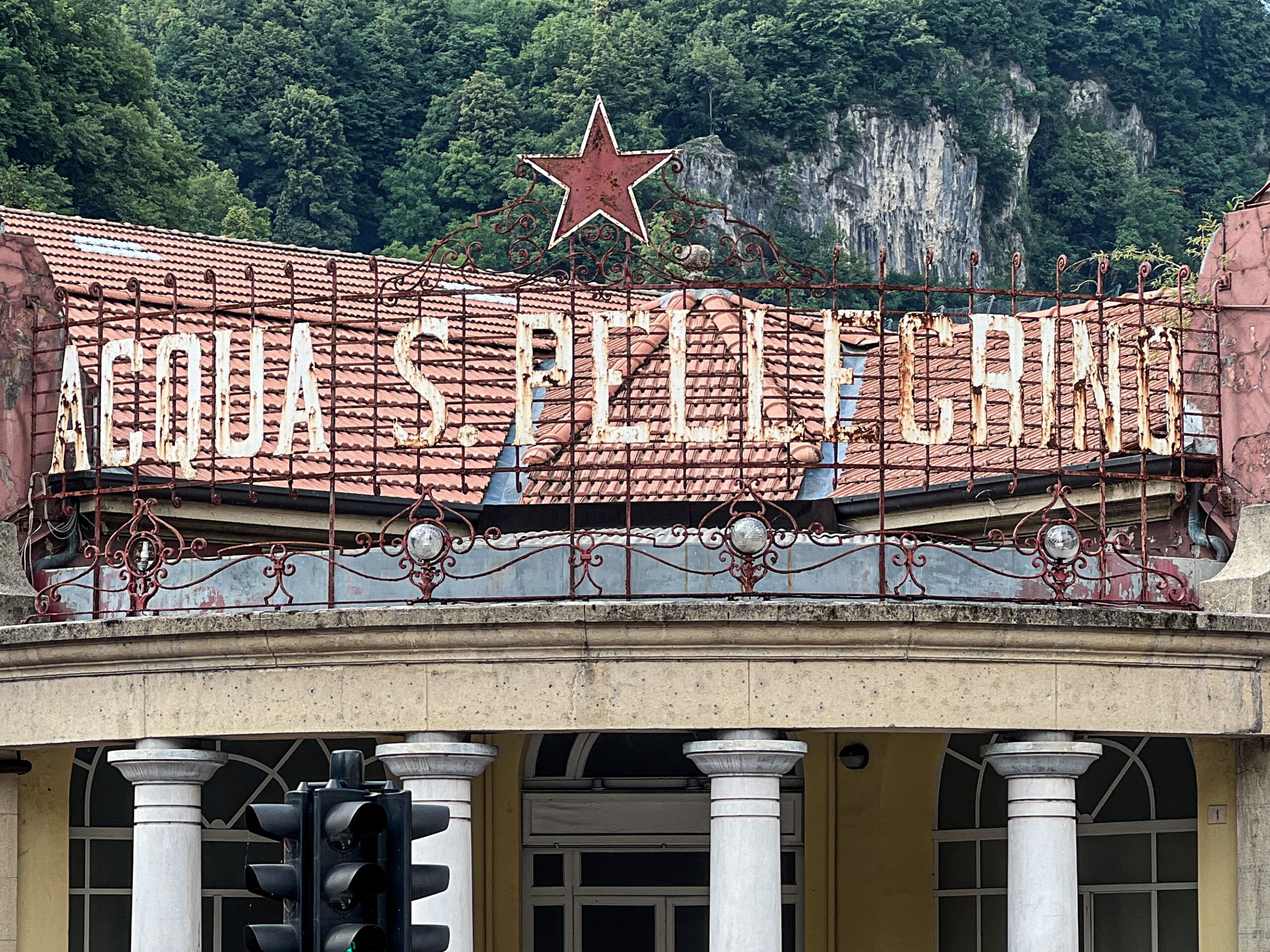 Als der Disconebel aufsteigt, sind es noch ein paar Kurven bis San Pellegrino Terme. Thementag Wasser. Der Kurort wurde Anfang des 20. Jahrhunderts von einem Mailänder Rechtsanwalt entwickelt. Thermalquellen wurde gefasst, Heilbäder gebaut, Casino und riesiges Grand Hotel hochgezogen. Strom, fließend Wasser und Telefon auf jedem der 130 Zimmer. Alles vom Feinsten. Ach ja, und abgefülltes Mineralwasser gab‘s auch. Der Plan des Rechtsanwalts Cesare Mazzoni ging auf. Der europäische Hochadel und die übrige Grandezza fluteten San Pellegrino. Als Mazzoni in den Neunzehnzwanzigern starb, ging‘s schon wieder bergab. Das Casino wurde verboten. Nach dem zweiten Weltkrieg war San Pellegrino mehr Schatten als Kur. Das Grand Hotel hatte mehr Pächterwechsel als Gäste. 1979 macht es die Läden dicht. Seit 2006 kümmert sich ein rühriger Bürgermeister um die Wiederherstellung der mondänen Alleinstellung. Mit einigem Erfolg. Langsam macht der Ort wieder was her. Noch nicht wirklich Monte Carlo, doch langsam kann sich San Pellegrino wieder sehen lassen. Nur das riesige Grand Hotel auf der anderen Seite des Flusses schnarcht hörbar.