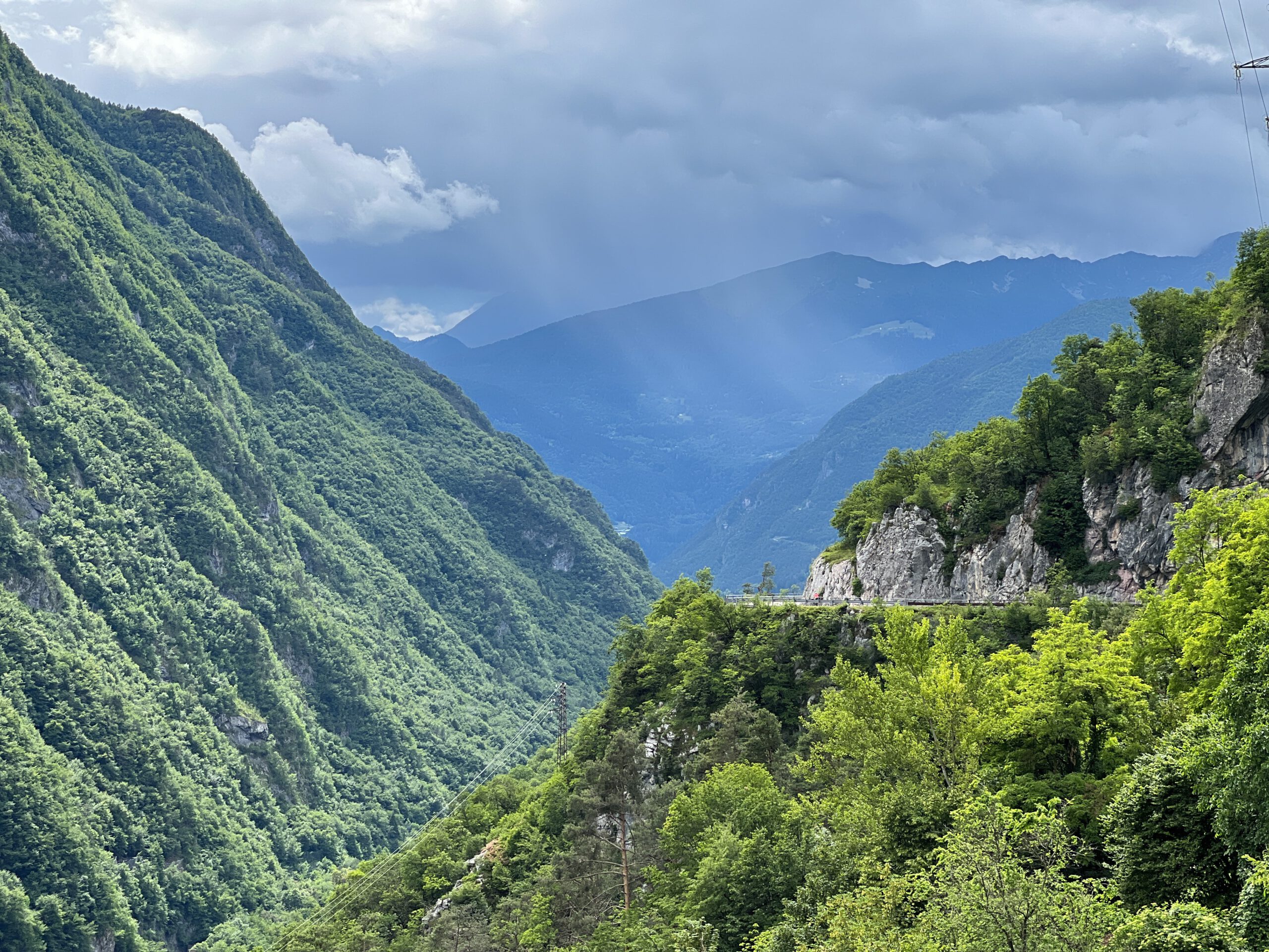 Erkenntnis des Tages: Das Leben braucht Kontraste. Auch auf Reisen. Der Bondone lässt die Schlucht-Passage noch heller leuchten als sie eh schon war. Endlich mal eine Kaffeefahrt-Etappe, die im Hauptteil nicht unbedingt zur Nachahmung empfohlen wird. Nicht, dass uns jemand vorwirft, wir würden mit Weichzeichner durch die Gegend fahren.