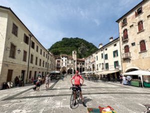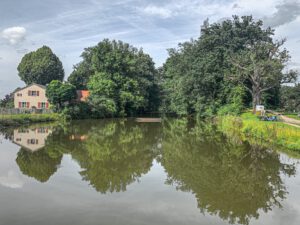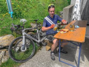 Stichwort Gleichgewicht. Heute Entspannungsetappe. Fast wie Ruhetag, nur etwas strampeln. Dafür endlich mal Kaffeefahrt im eigentlichen Sinne. Und wo gibt’s den besten? In der Dorfbar, dort wo sich heute noch die Dorfjugend der Jahrgänge 1948 bis 1968 trifft, Eingeborene und Zugezogene.