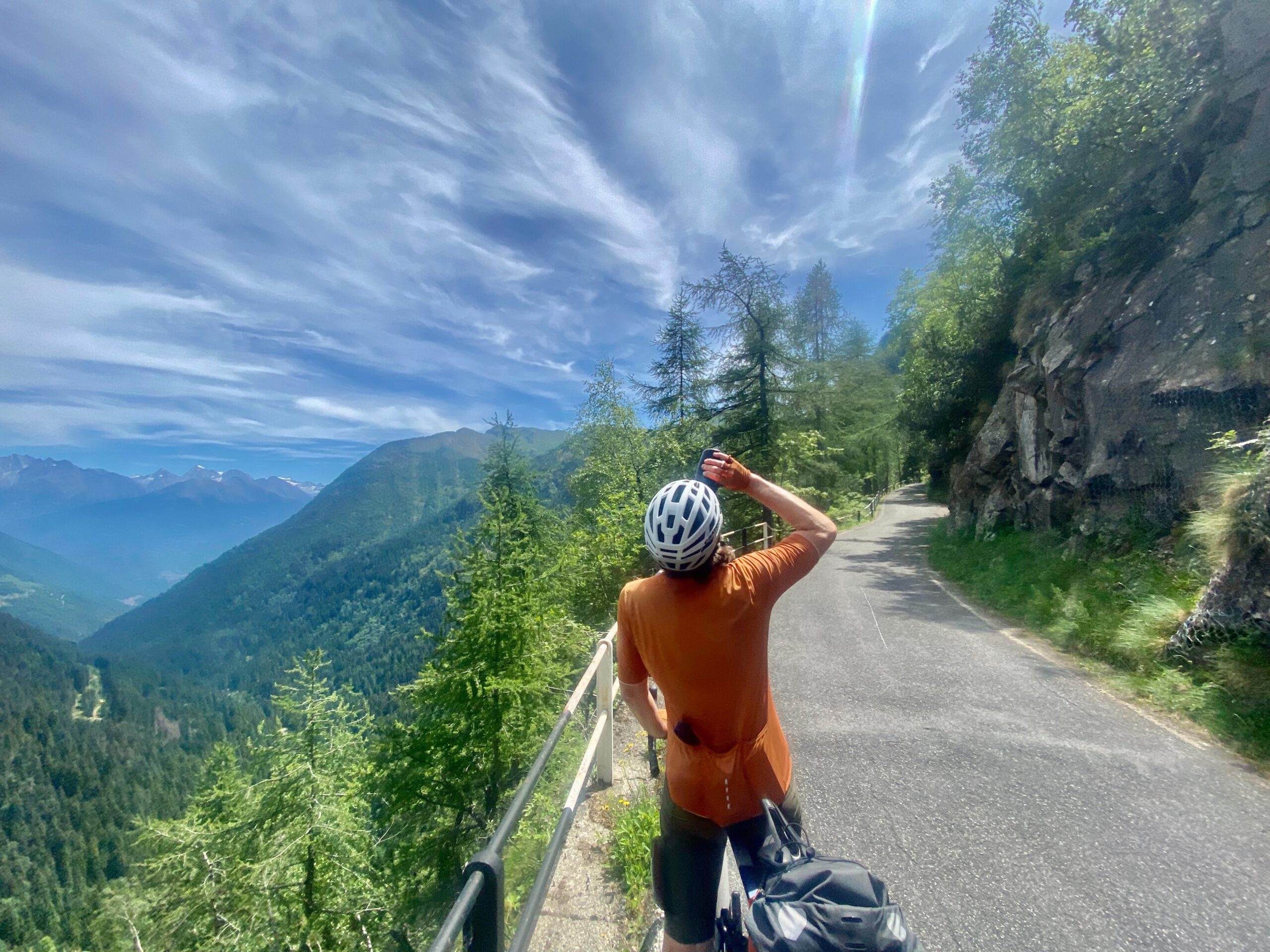 Schluchtenschilder passierten wir heute reichlich. Der Passo Vivione hat spektakuläre Felsabstürze. Im Grunde ist er nur ein Feldweg. Aber so wundervoll! Nur die Verzweiflungsstrategie den Pass Zickzack herauf zu schnaufen, damit das Gefälle flacher wird, sollte man tunlichst unterlassen. Schön in der Mitte fahren, mit Abstand zum Abgrund. Und runter ganz langsam. Wie auf dem Finanzamt: Versteuern wird teuer. Die Landschaft ist auch radlerisch praktisch. Kannst du schön viele Fotopausen machen, damit es nicht so auffällt, dass die Pause eigentlich der Kondition geschuldet ist. Wir fahren klar auf Ankommen.