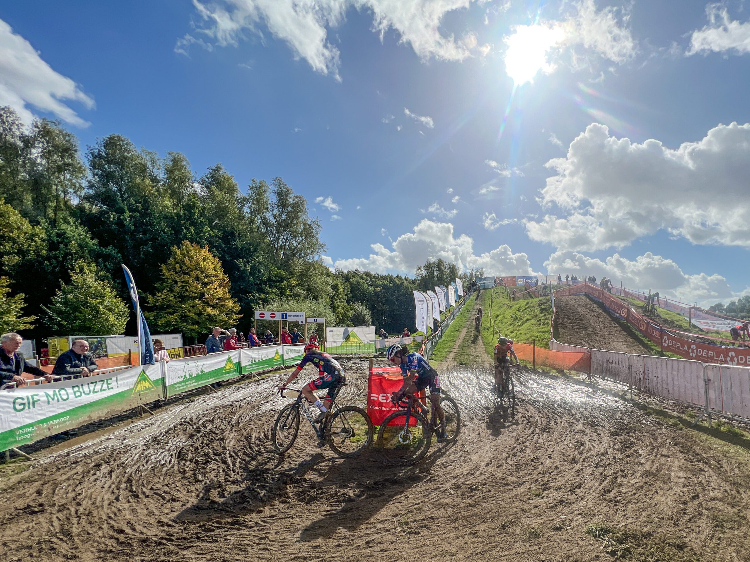 In der Nacht hatte es geschüttet, was im Wolkenkübel drin war. Genau richtig! Optimale Bedingungen. Gibt nicht viele Events, zu denen die Leute mit Gummistiefel erscheinen. Runde 4000 werden es schon gewesen sein. Die ohne Gummistiefel mitgezählt. Endlich nicht selbst radeln, sondern radeln lassen. Ich hatte nur ne Halbetappe. Alles flach. Ich wollte nicht vorwärts kommen, sondern zum Berencross in Meulebeke. Drittes Rennen der Exakt Serie und letzte Vorbereitung vor dem ersten Weltcup der Saison. Alle da: Die gesamte Belgische und Niederländische Elite. Die Sonne dann auch – und ich.