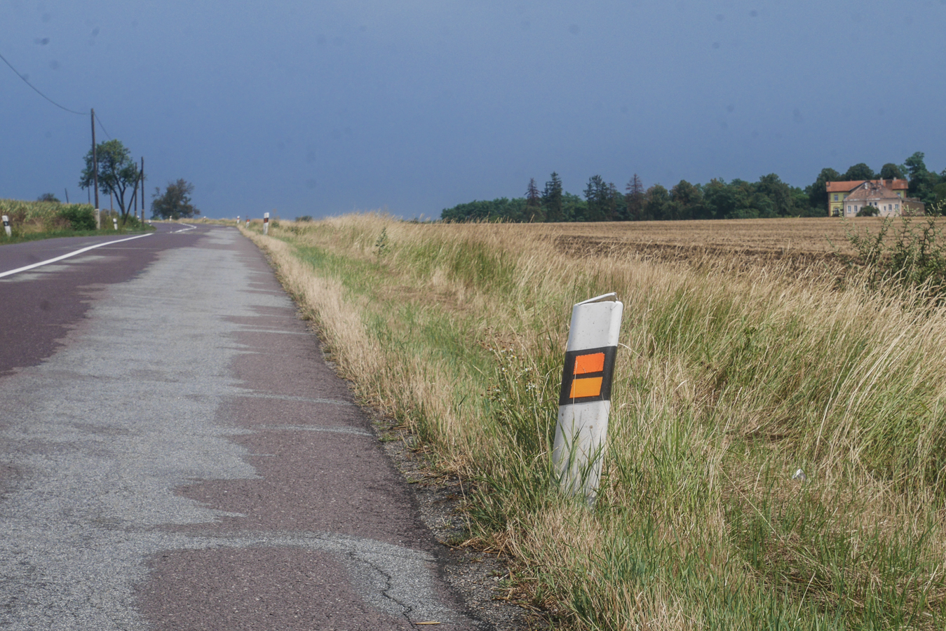 Blöd vor allem, dass man vor lauter Wasser kaum was erkennt. Fotomomente heute keine. Wolkenverhangene Ebene ist ja nicht gerade das, was man von einer solchen Reise zeigen mag. Bei der Planung stell ich mir das immer im Sonnenschein vor. Immer. Ohne Ausnahme. Fall ich den üblichen Tourismusbilder zum Opfer, oder bin ich tatsächlich notorischer Wetteroptimist? Dann dauernd Stoßgebete: Möge bitte mein drittes Garmin Navi endlich wirklich wasserdicht sein (bis jetzt schon). Möge das doofe Geknatter, das mein Rad plötzlich von sich gibt, genauso unvermittelt verschwinden, wie es erschien (ein halber Liter Fahrradöl am Abend könnte geholfen haben). Möge diese Schotterpiste nach der nächsten Kurve besser werden (nein). Und das, wo das Abenteuer heute erst richtig beginnt.
