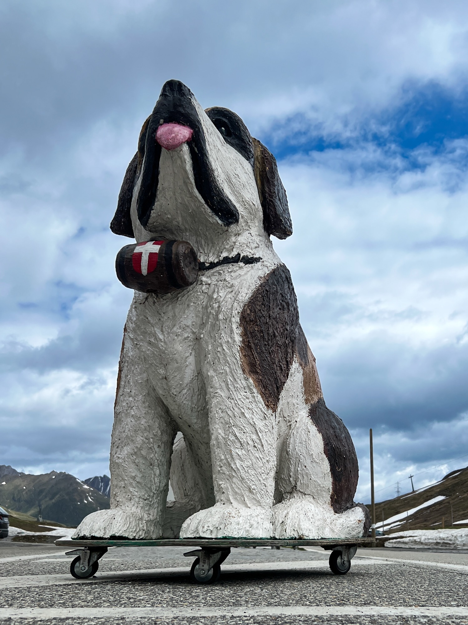Gegen jeder Erwartung spüre ich bereits in den ersten Serpentinen Diamanten in den Beinen. Also Mischung aus Oberwasser und Überzwerch. Der Aufstieg liegt in der Sonne, und meine Stimmung auch. Heut kurbelt sich’s von alleine. Ich trete einen Rhythmus, den ich gar nicht von mir kenne. Die Meilensteine am Straßenrand bestätigen, es geht 5 Prozent hoch. Ich kurble als wäre es eben. Weil der Tag lang wird, drossele ich den Takt und bin immer noch zu schnell. Euphorie macht sich breit. Und etwas mulmiges Gefühl, weil Oberwasser extrem gefährlich. Als ich pausiere, erlebe ich das zweite Rad-Wunder. Michl klebt hinter einer Trainingsgruppe aus Vater und Sohn, die mit einem Mördertempo dem Himmel entgegen streben, oder wenigstens dem kleinen St. Bernard. Er lässt sich locker flockig den Berg hochziehen, atmet dabei nur durch die Nase. Ein Flow namens Michl. Es sind mythische Momente. Michl kurbelt schwerelos. Fit wie ein junges Nachwuchstalent kurz vor dem Wechsel in den Profikader. Damit Ende der leichten Ausschmückung.