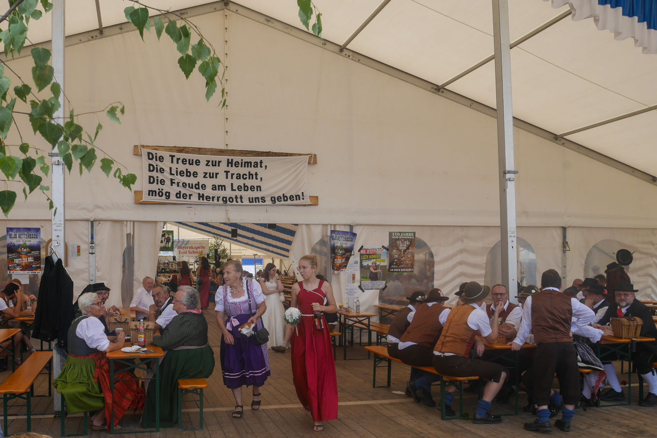 Der Trachtenverein Brennberg feierte sein Fünfzigjähriges. Erst Kirche, dann Frühschoppen und dann erschien ich, in komplett unzünftigem Radler-Lycra. Neugierig bin ich ja schon. Drum hatte ich mich mutig dem Festzelt genähert. Außerirdischer Hilfsausdruck. Fast monochrom, mein Dress. Manche würden sagen, so viel Figur hätt‘ man gar nicht sehen wollen. Ganz im Gegensatz zum feinen Trachtenzwirn der anwesenden Feiergesellschaft. Ganz schön üppig alles, inklusive der roten Kugeln, die als Köpfe aus den Trachten herausschauten. Fast hätte ich mich an einen Tisch der schön Getrachteten gesetzt. Die Madls trugen sogar Krönchen im Haar. Aber ich war unsicher, ob ich deren Sprache verstehe – und sie meine. Außerdem wäre ich bei gutem Gesprächsverlauf genötigt worden, ein Bier zu trinken. Zug hätt ja ich drauf gehabt. In Brennberg brannten mir bereits die Waden – und die Elektrolyte, frage nicht. In den Gründerjahren des Radsports galt Bier als hilfreich für die Puste. Aber heut weiß man’s ja besser. Und es war erst Elfe. Der Einstieg in den Bayrischen Wald geht voll zu Sache. Was Rauf und Runter betrifft, handelt es sich um ein extrem willkürliches Mittelgebirge. Von wegen rhythmisches Treten. Steil rauf, und wieder leicht runter. Noch steiler rauf, und wieder etwas runter. So viel geschaltet hab ich mein ganzes Leben nicht wie heute. Später hat sich rausgestellt, dass auch das Runterfahren brennt. Immer diese giftigen Gegenhänge. All das ahnte ich bereits Brennberg im Angesicht der Madln und Burschen. Nee… Hat hier jemand Feigling gesagt? Hab ich nicht gehört.